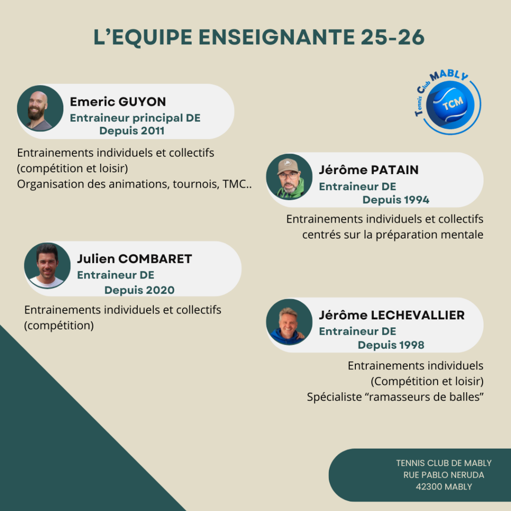 Du lundi au samedi, nos enseignants mettent au service de nos membres leur expertise et